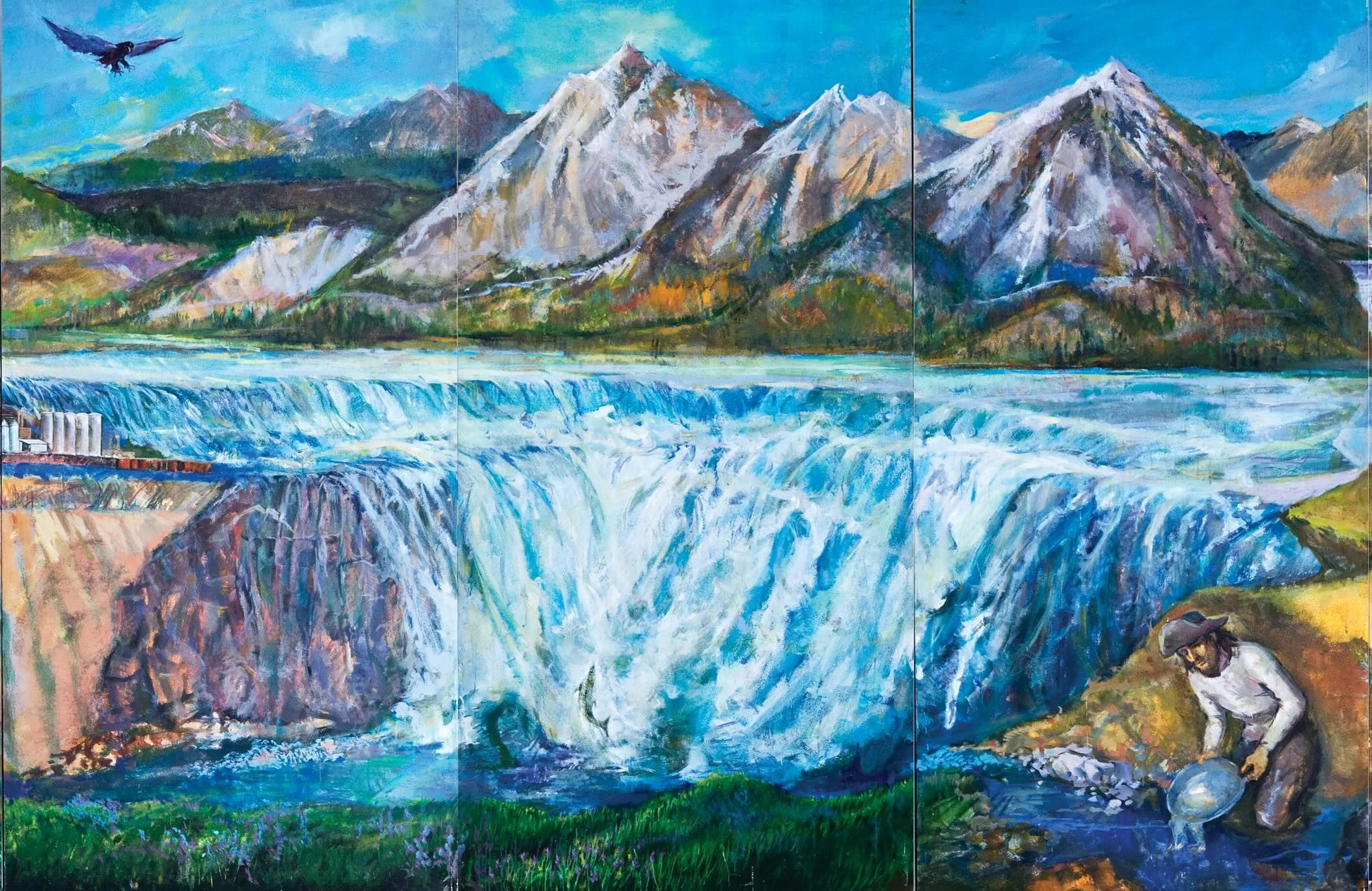 John Collias’s 10x35-foot mural Idaho: A Portrait of a Distinguished State is on display for the rest of 2026 at the Idaho State Museum, 610 Julia Davis Dr, Boise, ID 83702.